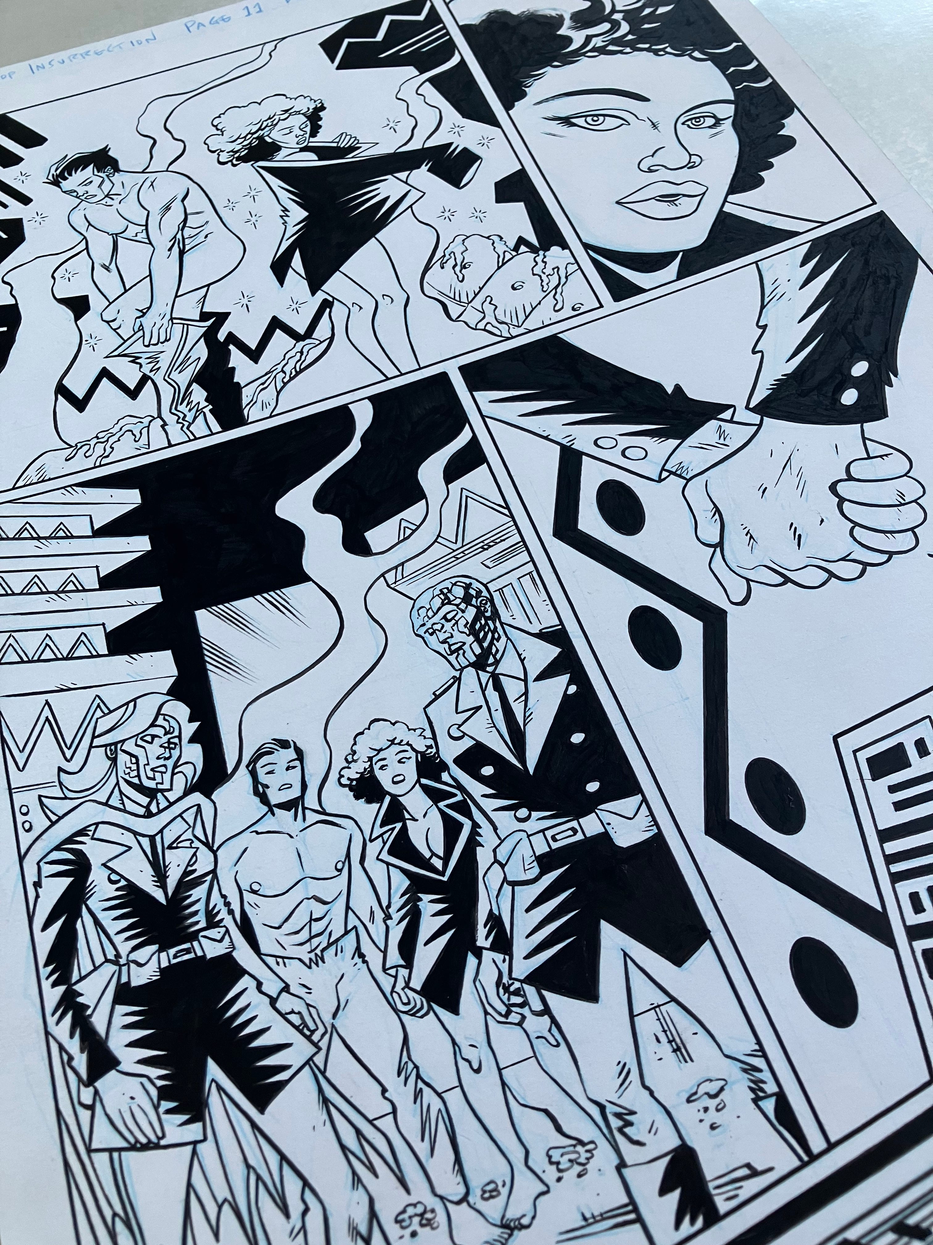 I’m more than halfway done finishing the line art on “Covid Cop Insurrection.” And I’m also concocting a fun encounter between Billy Dogma, Jane Legit and Chest Face! That, plus more for ANTIMATTER #1, my one-man comix anthology (which you can still support/make a pledge for if you haven’t already).