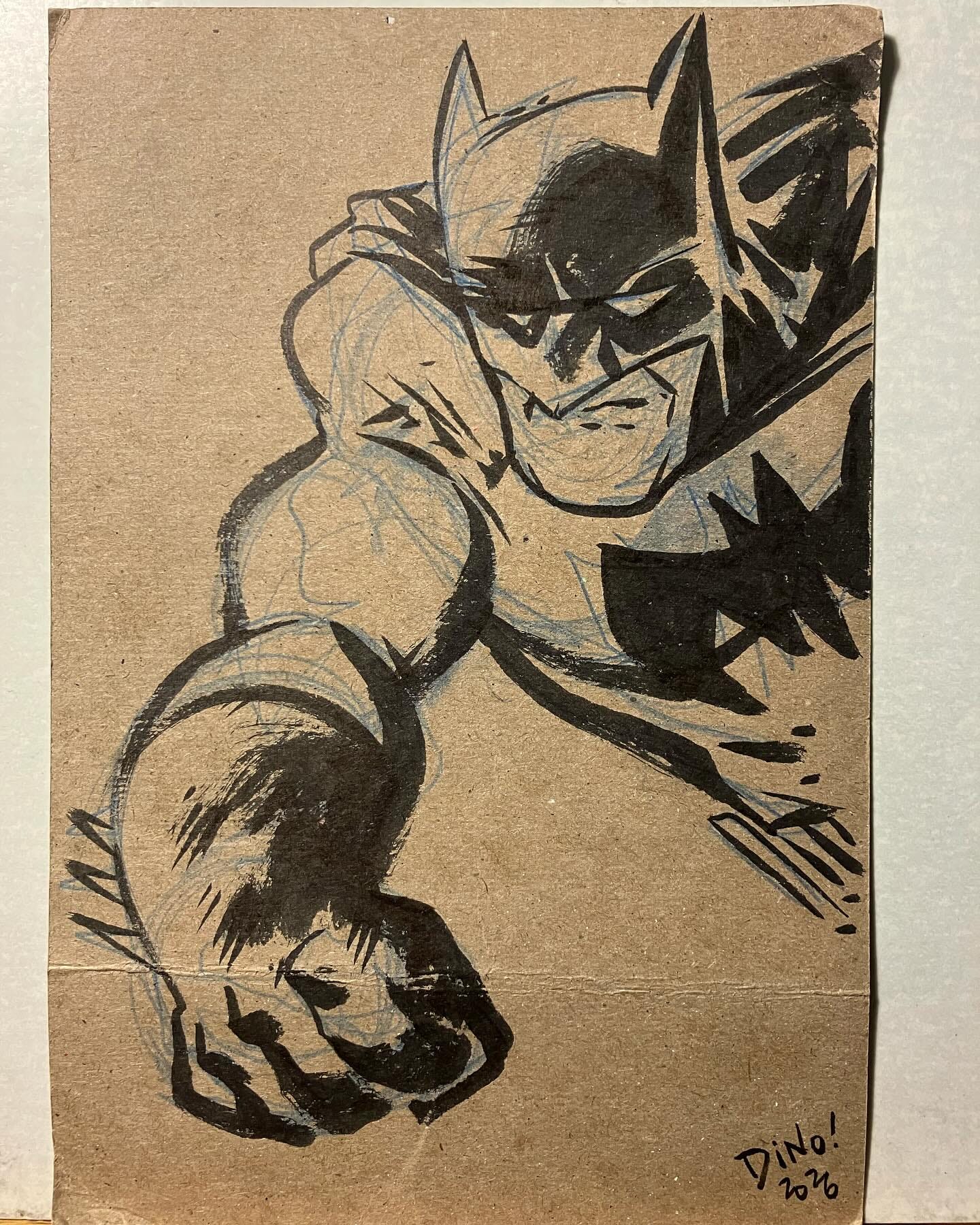 Not using funds saved for the printing, packaging and shipping of ANTIMATTER #1, I decided to offer small cardboard sketches for a hundred bucks each. Pick your favorite character and you’ll get a Down & Dirty drawing (like the Batman below) mailed to your home. Or make it a gift for your pal. Your call. DM me for details.