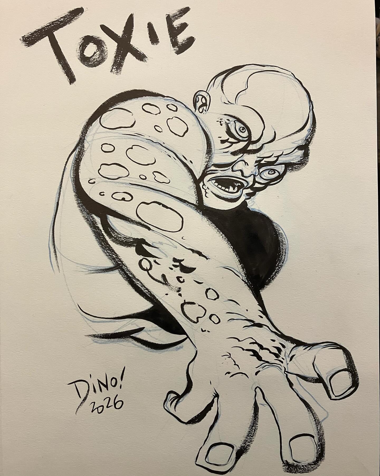 I also had a pleasant time doing panels and hanging out with all stripes of pop culture creatures at LICH, The Long Island Convention of Horror in Hauppauge, NY. I drove up with my buddy Fred Harper who is currently the regular artist on the The Toxic Avenger comix published by Ahoy! The Troma folks were there, too, and Toxic Avenger movie creator & director Lloyd Kaufman and I signed exclusive posters for Mr. Melvin, The Toxic Avenger sequel reconstruction.